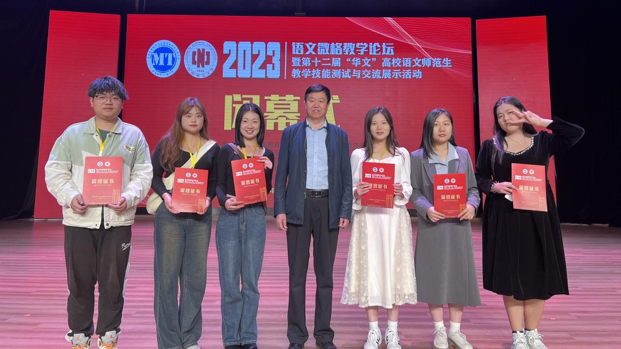 11月3日至6日,2023年语文微格教学论坛暨第十二届“华文”高校语文师范生教学技能测试与交流展示活动在江西师范大学举办。我校人文学院汉语言文学专业学生刘杨、毛蕊、司语婷、赵智博、王彦弼、谭银铃在教学设计和教学技能两个环节的技能测试中获得一等奖4项,二等奖5项,三等奖3项。