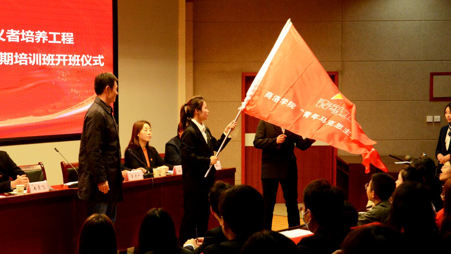 在热烈的掌声中,刘勇为第十二期“青马班”授旗,并为第十二期“青马班”指导教师颁发聘书。
