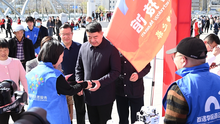 3月19日,商洛市深化“爱我商洛”主题实践、争创全国文明城市“文明传递”暨“暖动鹤城”文明实践志愿服务示范活动在商鞅广场举行。我校“流动科技馆”“大学生心理科普”2支志愿者服务团队20余人参加现场文明实践志愿服务活动。