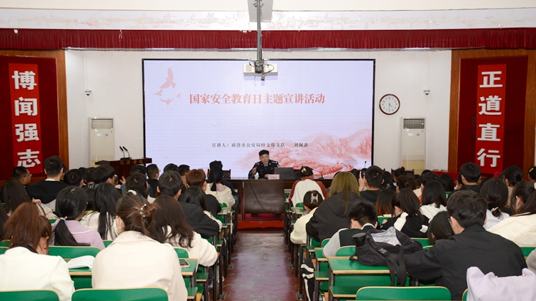 为深入开展全民国家安全教育日宣传活动,增强广大师生防范电信诈骗和反邪教意识,4月8日下午,我校邀请商洛市公安局一级警长毛瑜和商洛市公安局经文保支队民警刘佩鑫,分别在丹江校区和北新街校区开展反邪教和反电信诈骗主题报告会。宣传部、保卫处相关负责人,各二级学院辅导员及学生代表350余人参加报告会。
