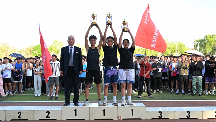 在热烈的掌声中,刘勇、王浩分别为获得体育道德风尚奖和教工组团体总分前三名的学院颁奖,刘宝盈、王新军、郭瑾分别为获得团体总分、男子团体总分、女子团体总分前三名的学院颁奖。