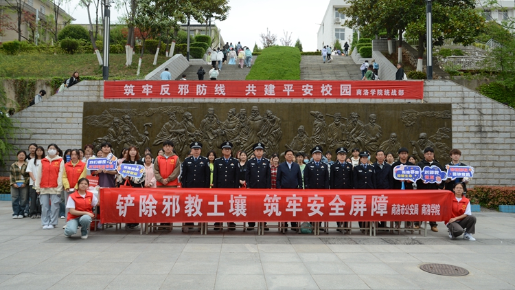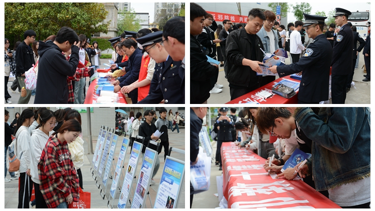 4月15日当天,统战部联合商洛市公安局分别在北新街校区和丹江校区开展“筑牢反邪防线,共建平安校园”反邪教警示宣传教育签名活动。商洛市公安局相关部门负责人及工作人员,学校党委办公室、统战部、保卫处相关负责人及工作人员,各二级学院学工办主任、辅导员代表、学生及志愿者共280余人参加了本次活动。