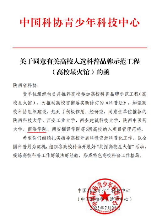 近日,中国科协青少年科技中心公布了高校科普品牌示范工程(高校星火馆)入选名单,我校凭借在科普资源转化、科普社会服务等工作中的突出表现成功入选,获得国家级平台的认可与支持,标志着我校科普工作迈上更高台阶。
