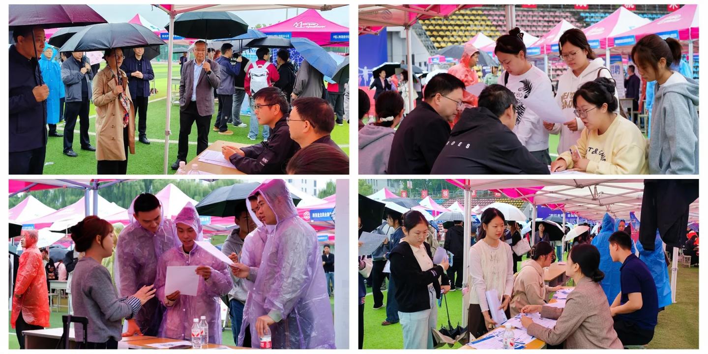 招聘会共邀请浙江泽悦信息科技有限公司、江苏瑞尔隆鼎实业有限公司、西安瑞联新材料股份有限公司等120余家用人单位来校参会,为毕业生提供涵盖多个行业的有效就业岗位4000余个。尽管秋雨连绵,但现场组织有序、推进顺利,毕业生与用人单位互动积极、气氛热烈。据统计,我校2143名2026届毕业生及400余名商洛籍退役士兵、未就业毕业生参加招聘会,现场投递简历2902份,初步达成就业意向214人。