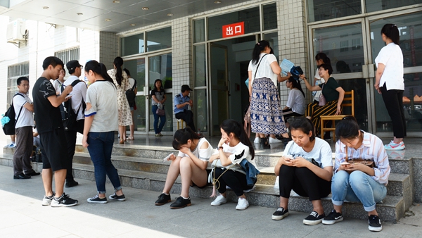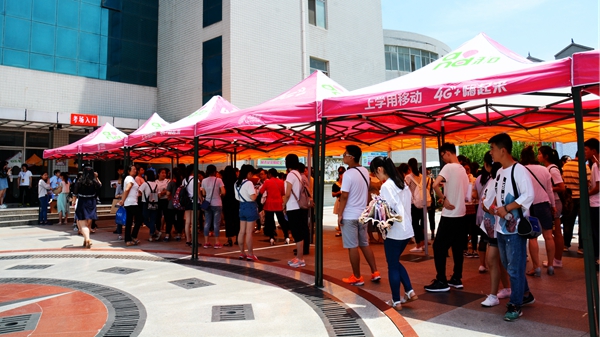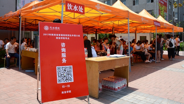 6月18日,是陕西省普通高校招生外语口语考试日。上午7:30开始,1541名考生陆续从商洛各地赶赴我校,在学生志愿者的引导下,有序排队进入考场参加考试,家长则在指定区域休息等候。