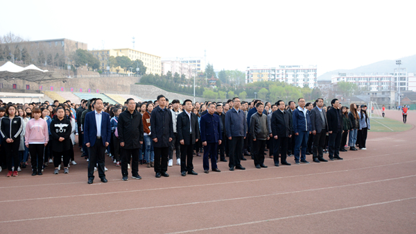 3月26日,晨曦微露、旭日东升,在学校体育场国旗台,我校举行了隆重的升国旗仪式。校领导龙治刚、范新会、王思怀、魏书堂、彭虎军、刘宝盈、刘勇,党委委员王新军、李超、杨存典、张向东,各职能部门、马克思主义学院、继续教育学院、体育教学部全体教职工,全校科级以上干部,马克思主义学院、经管学院学生1300余人参加升旗仪式。