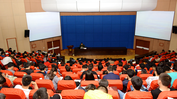 此次培训共分为两个环节,分别为消防知识讲座和灭火器材实际操作演练。在图书馆二楼报告厅的知识讲座中,安东超首先对近年发生的多起特大消防安全事故案例进行剖析,启迪全体师生增强消防安全意识,接着对如何预防火灾、处置火灾、引导人员疏散、逃生自救,以及各类消防器材设施的使用及检查方法进行了介绍。他指出,广大师生应掌握各类消防器材的使用方法,具备基本的消防安全技能,把功夫下在平日,防患于未然。