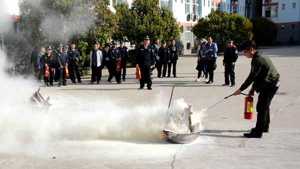 随后,安东超带领实验员、校警及公寓管理员在11号公寓楼前进行灭火器材实际操作演练,给我校师生上了一堂生动形象的消防安全知识培训课。