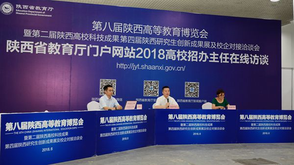 在做好现场招生咨询工作的同时,我校积极参加组委会举办的“陕西省教育厅门户网站2018高校招办主任在线访谈”活动,与考生及家长进行面对面交流。