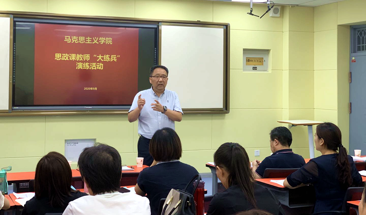 教务处、督导与评估中心、学校教学督导组相关负责人以及我校省级教学竞赛获奖教师担任评委,对思政课教师“大练兵”活动进行了现场指导。马克思主义学院全体教师参加了本次活动。