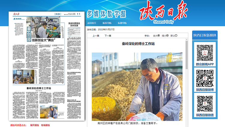 1月27日,《陕西日报》科技版以《秦岭深处的博士工作站》为题,专题报道了我校与陕西森弗天然制品有限公司开展产学研合作,建立博士工作站,助力科技成果转化,服务产业升级,带动地方发展和乡村振兴的工作成果。