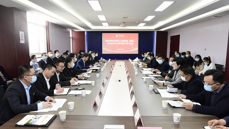 我校15个科创项目负责人从技术背景、核心产品、商业模式、产业化前景、项目规划、团队组成等方面进行了项目推介汇报展示。参会人员围绕共建秦创原(商洛)创新促进中心,以企业需求为主导加快科技成果转化落地,校政企三方开展座谈交流。