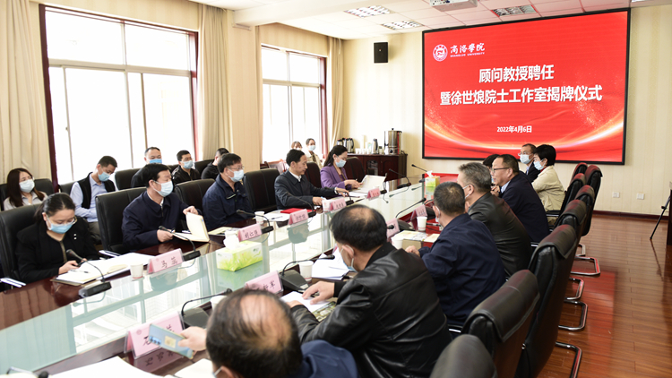 4月6日,我校召开顾问教授聘任暨徐世烺院士工作室揭牌仪式,中国科学院院士徐世烺受聘我校顾问教授。商洛市政协副主席、市科技局党组书记、局长赵绪春,市委组织部常务副部长胡仁强出席聘任仪式。校党委书记张志昌向徐世烺院士颁发聘书。校长范新会致辞并和市科协党组书记、主席董红梅一同为“徐世烺院士工作室”揭牌。副校长王新军介绍徐世烺院士的学术成就。副校长刘宝盈主持聘任仪式。