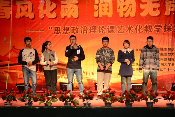 11月22日晚,由我校思政部、思想文化研究所、陕西省社会化问题研究应用科普基地等联合举办的“春风化雨润物无声——思想政治理论课艺术化教学探索”汇报演出活动在学校大学生活动中心举办。宣传部、团委、教务处、学生处、电信学院党总支、思政部相关负责人,思政部全体教师及2015级400余名学生观看了演出。
