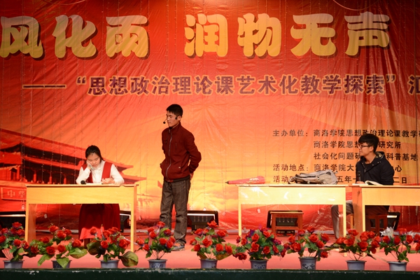 长期以来,围绕如何不断增强思政课的实效性,不断改善思政课的课堂教学效果,不断创新思政课的实践教学模式,思政部全体教师认真贯彻落实《中共中央宣传部、教育部关于进一步加强和改进高等学校思想政治理论课的意见》的有关精神,不断加强教学方法研究,不断优化教学手段,为把思想政治理论课建设成为大学生真心喜爱、终身受益的课程而不懈努力,进行了全方位的探索。本次“春风化雨润物无声——思想政治理论课艺术化教学探索”汇报演出以“思想政治理论课生命课堂实践体系构建研究”、“社会主义核心价值观视域下高校思想政治理论课实践教学模式的创新与实践研究”、“双向案例教学法在高校‘思政课’中的应用”等三个陕西省教育科学规划课题为依托,是对我校思政课教学方法改革探索的一次有益尝试。