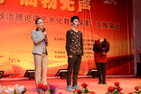 一位参加演出的同学讲,这是他第一次参加大型晚会的演出,通过参加活动他的团队协作意识得以提高,组织管理能力得以锻炼。他非常喜欢这样的教学方法,这种教学方法让思想政治理论课的教材内容“活”了起来,贴近大学生实际解答大学生困惑。这是他受益匪浅、终生难忘的一个夜晚。