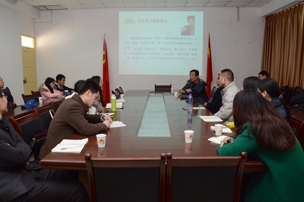 马英群在报告中从教学设计的理论与实践、基本模式与特点、微观层面的教学设计等方面为参加的青年教师做了详细阐释,并对青年教师提出了五点建议。