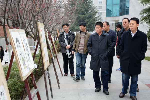 为丰富和创新学生工作的内容与形式,探索艺术生思想政治教育的有效途径,本学期来,艺术学院党总支组织、策划了学生主题思想教育系列活动。12月7日,活动成果在我校1号教学楼走廊和北院中心花园展出。校党委副书记、副校长范新会,党委副书记彭虎军前往参观,对艺术学院将学生创新实践与思想政治教育工作结合的做法给予高度评价。党委宣传部、学生处、发展规划与合作交流处、艺术学院党总支负责人陪同参观。