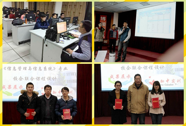 为进一步深化校企联合培养应用型人才模式,提高课程设计的应用性和创新性,2015年,经济与管理学院再次与维多利亚教育集团中国总部——加中实训基地进行深度合作,聘请企业工程师为外聘教师来校授课、与实训基地建立长期的综合实习合作关系,并在本学期末特邀基地资深工程师齐岩、王玉芳、王杰3位实训教师来校为信息管理与信息系统专业2013级学生进行课程设计指导。