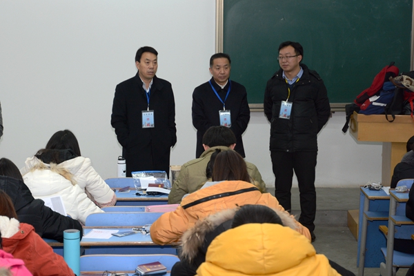 为进一步严肃考风考纪,加强对考务工作的管理,1月5日,校领导刘建林、范新会、王思怀、魏书堂、彭虎军、刘宝盈分头深入期末考试考场,视察期末考试工作。