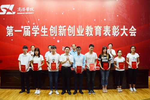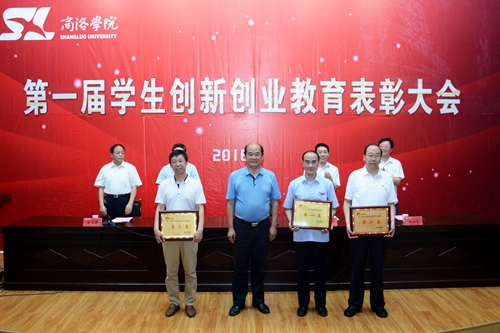 校领导刘建林、彭虎军,教务处处长李超、学生处处长石启英、科技处处长李继高分别为受表彰学生及集体代表领奖。石启英宣读了《商洛学院关于表彰第一届学生创新创业教育先进集体、优胜团队及标兵、优秀指导教师、学生工作优秀创新成果的决定》。