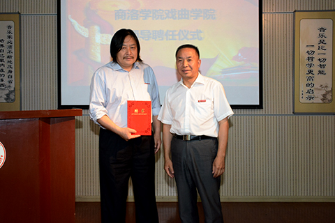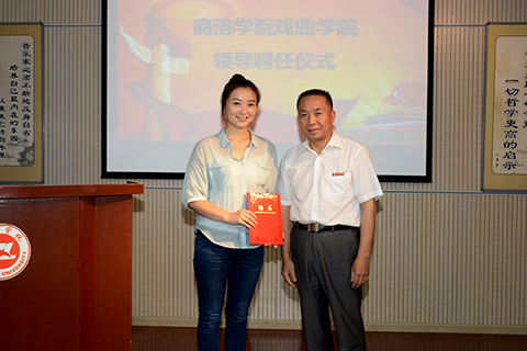 7月6日,我校举行戏曲学院领导班子聘任仪式,校纪委书记王思怀为戏曲学院领导班子成员颁发聘书。艺术学院院长刘凤林受聘戏曲学院院长,艺术学院副院长李世鹏受聘戏曲学院副院长,商洛市剧团副团长周婉怡受聘戏曲学院副院长。聘任仪式由干部人事处处长高荣发主持。教务处处长李超参加聘任仪式并宣读聘任文件。