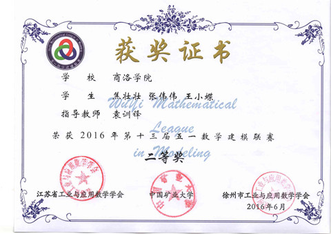 近日,由江苏省工业与数学应用学会主办的“第十三届五一数学建模竞赛”结果揭晓,我校电子信息与电气工程学院物理学专业2014级焦壮壮、张伟伟和电子信息工程专业2015级王小蝶3位同学组成的数学建模参赛队喜获二等奖。这是我校首次组建代表队参加此项赛事并获佳绩。