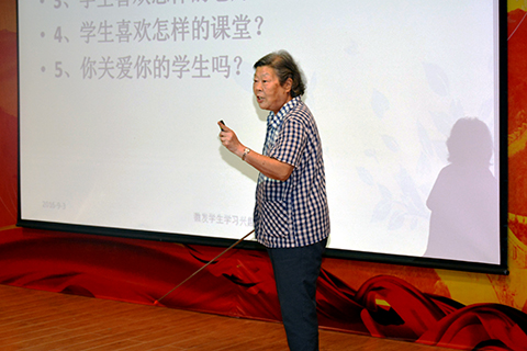 胡奈赛教授语言幽默、思路清晰,善于旁征博引,时不时用时事热点举例说明。她在报告会上引用西游记唐僧取经以及2016里约奥运会郎平带领中国女排夺冠的故事,向我们阐述了教师对待学生应有的技巧和态度——关爱学生,了解每一位学生的个性特点并加以引导,使他们由兴趣转化为学习的动力。