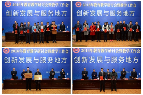 大会对我校2016年度优秀教案及优秀电子课件、教育实习优秀指导教师和优秀实习生、教育教学研讨会优秀论文及优秀组织单位、青年教师教学技能竞赛优胜者、校级以上本科教学工程项目及教学名师进行了表彰。副校长魏书堂宣读了表彰决定。在热烈的掌声中,出席大会的校领导为受表彰的集体和个人代表颁发了获奖证书。陕西省第十届教学名师、化材学院院长周春生,2016年青年教师教学技能大赛一等奖获得者李亚文分别作了发言。
