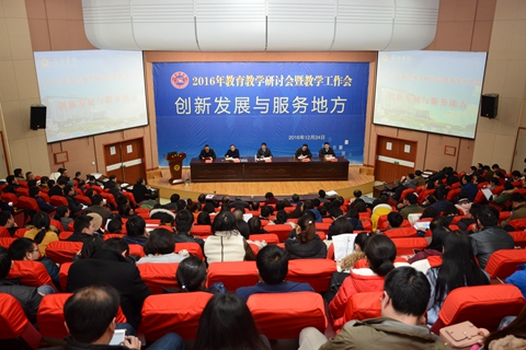 12月24日,我校隆重召开2016年教育教学研讨会暨教学工作会。党委副书记、副校长范新会在会上作教学工作报告并讲话。校领导王思怀、魏书堂、彭虎军、刘宝盈出席大会。大会以“创新发展与服务地方”为主题,邀请西安电子科技大学教务处处长、博士生导师郭宝龙教授,全国创新创业教育联盟专家、新道科技股份有限公司总部互联网事业部市场部总经理倪莉芸作专题报告,对2016年度教育教学工作中涌现出的先进集体和个人进行了表彰。相关职能部门负责人和教育教学研究优秀论文作者在大会上作了专题报告和交流。
