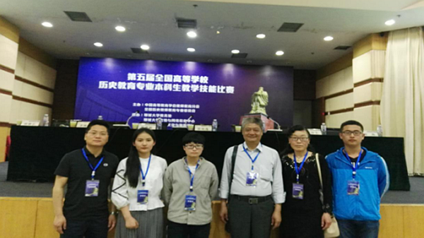 5月9日,第五届全国高等学校历史教育专业本科生教学技能比赛在山东聊城大学圆满落幕。我校人文社会科学学院历史学2014级学生田梦颖荣获讲课二等奖,历史学2015级学生霍帅荣获说课三等奖,指导教师李宝宝、王秀绒、杨增强荣获优秀指导教师奖,获奖率位居我省同类院校前列。我校人文学院院长杨增强、历史系主任王秀绒、教师李宝宝带领学生田梦颖、霍帅、姚红利参加了比赛。