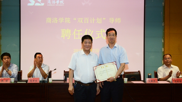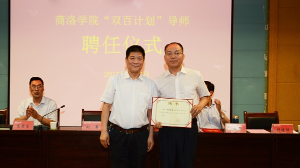 仪式上,范校长为刘新民教授、杨建设教授颁发了“双百计划”导师聘书。