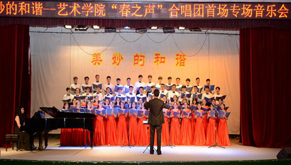 艺术学院“春之声”合唱团成立于2017年3月,团员从音乐学专业大一、大二、大三年级学生中选拔产生,现有成员60人。合唱团的成立,旨在促进我校音乐学专业的建设与发展,推动校园文化建设,提高学生的音乐综合素质和艺术修养。