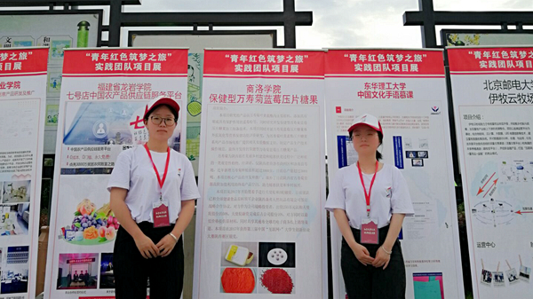 7月12日至16日,第四届中国“互联网+”大学生创新创业大赛“青年红色筑梦之旅”全国对接活动在江西举行。健康学院教师任嘉瑜、生物学院学生牛仙,代表《保健型万寿菊蓝莓压片糖果》团队参加此次活动,这是我校师生首次参加全国“互联网+”系列活动。