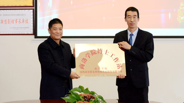 刘宝盈与贾小卫代表双方签订了《商洛学院·陕西商洛蓝农业科技发展股份有限公司战略合作协议》。