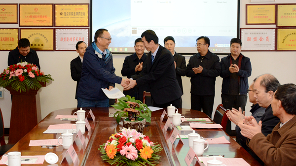 范新会、冀博为我校与商洛蓝公司共建的“商洛市食用菌研发中心”揭牌。我校还在商洛蓝公司建立了“商洛学院博士工作站”“商洛学院教学实验实践基地”,这标志着商州区第一家食用菌研发中心和博士工作站成立。范新会、刘宝盈代表学校授牌,贾小卫、张向平分别代表公司接牌。