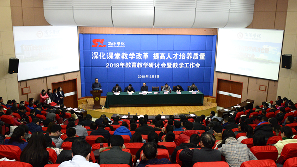 12月8日,我校召开2018年教育教学研讨会暨教学工作会。党委书记龙治刚、校长范新会、纪委书记王思怀、副校长魏书堂、党委副书记彭虎军,副校长刘宝盈、刘勇出席大会。大会以“深化课堂教学改革,提高人才培养质量”为主题,邀请西安交通大学陆根书教授作了精彩报告,相关职能部门负责人及优秀教师代表在大会上作了专题报告和交流。大会还对2018年度教育教学工作中涌现出的先进集体和个人进行了表彰。全校科级以上干部和专任教师共400余人参加大会。大会由刘勇主持。