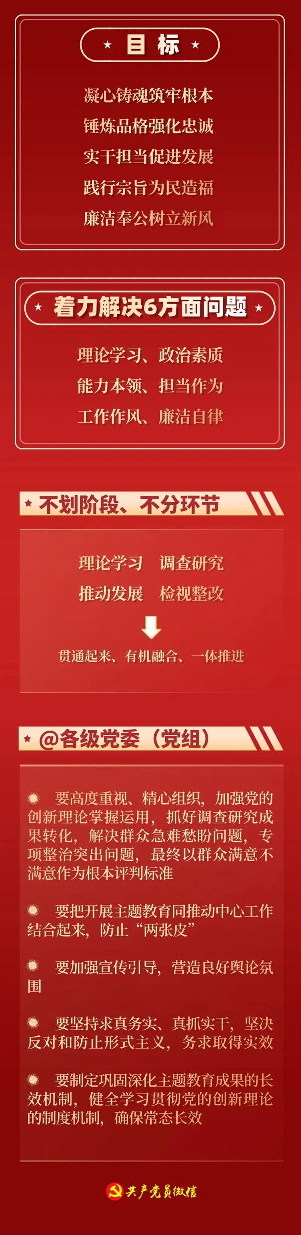 这次主题教育的总要求、根本任务是什么,具体要达到怎样的目标,一起来学习。
