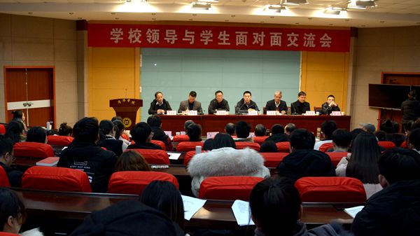 12月18日,我校举办学校领导与学生面对面交流会,围绕学生关心、关注的焦点与重点问题展开交流,解答学生生活、学习与发展中的困惑与疑难问题,校党委副书记彭虎军出席,教务处、学生处、团委、保卫处、后勤保障处、图书馆负责人,各学院党总支书记、学工办主任、全体辅导员、学生代表参加会议。