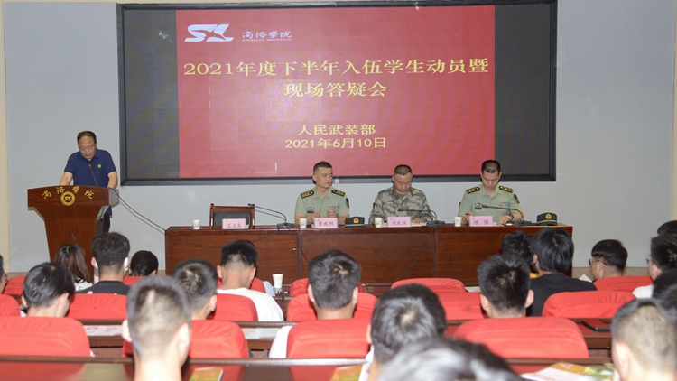6月10日,我校举办2021年度下半年入伍学生动员暨现场答疑会,商洛军分区动员处处长周武强、商州区武装部部长曹建明、商州区武装部副部长陈强中校出席会议。我校各二级学院学工办主任、报名入伍学生160余人参加会议。会议由学生处处长石启英主持。