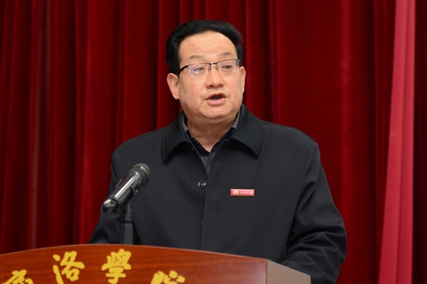 范新会在讲话中代表全校师生对关心和支持我校发展、为我校学生提供资助的5家合作单位表示衷心的感谢,向受表彰和受资助的学生和先进集体表示热烈的祝贺。范新会指出,6年来5家企业先后资助我校学生810人次,资助金额166万元,同时与我校在人才培养、专业建设、学生社会实践等方面的校企合作均取得了可喜的成绩。一年来,我校学生工作始终坚持以生为本的理念,以学生党建为龙头,以“三早一晚”“学风示范工程”为抓手,努力为学生成长成才搭建平台,服务育人质量不断提高,工作中涌现出了一批先进集体和个人典型。范新会希望全体在校学生志存高远、立志成才,以实际行动报效祖国;勤于学习,勇于创新,做敢于担当的栋梁之才;学习先进,锤炼意志,为学校发展和社会进步再立新功。