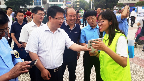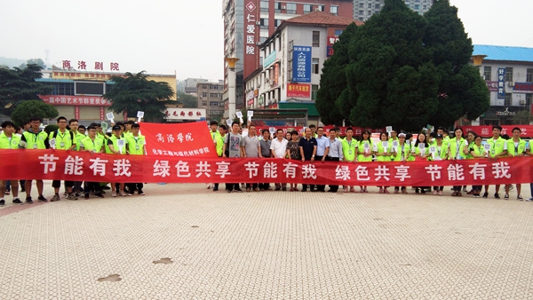 6月14日,由我校化材学院团总支与商洛市循环经济协会共同举办的2017年“节能有我,绿色共享”节能宣传周活动在市中心广场举行。商洛市常务副市长李豫琦出席活动,并为我校学生热心公益、爱护环境的行为点赞。我校化材学院组织学生志愿者参加活动。
