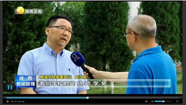 商洛学院党委书记龙治刚:“我们学校的奖、贷、助、学、免、勤、医、保等八位一体的这种对贫困生的这种资助的政策,实现了我们(对)学生的这样一个承诺,进入商洛学院的学生绝对没有一位因为家庭贫困而辍学。”