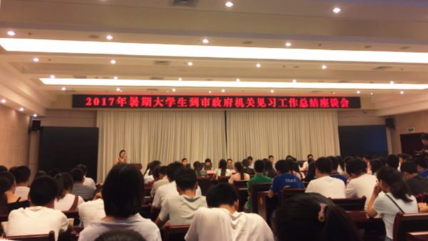 在总结座谈会上,我校学生畅谈了在不同岗位见习期间的收获和感悟,总结了对公务员职业和社会管理的认识,并就我市城乡道路建设、基础设施建设、公共服务等方面工作提出意见和建议。