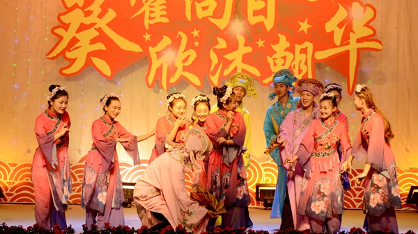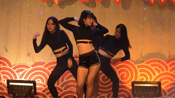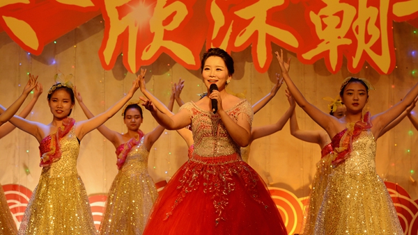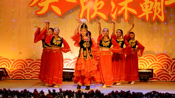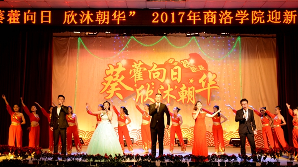 我校艺术学院教师潘勋、苏军、王娜娜、王怡等带来的歌伴舞《阳光路上》把整场晚会推向高潮。晚会在观众意犹未尽的赞美声中完美谢幕。