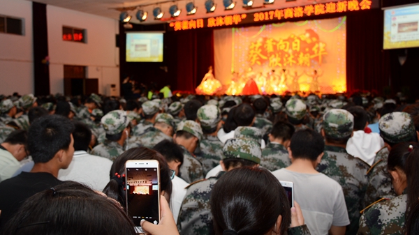 9月19日晚,以”葵藿向日、欣沐朝华”为主题的2017年迎新晚会在大学生活动中心隆重上演。校领导龙治刚、范新会、魏书堂、刘宝盈、刘勇同师生一同观看了晚会。晚会由校团委、学工部主办。