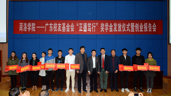 据悉,“正德笃行”奖学金是2016年由广东校友会发起、我校在粤校友个人捐资设立的奖学金。“正德笃行”奖学金每年10月份评选,评定工作严格按照《商洛学院广东校友基金会“正德笃行”奖学金评选办法》,由学生处会同校友总会办公室,在参考学生学业成绩和综合素质测评成绩的基础上,主要围绕学生参加各级各类大赛获奖、公益志愿服务、学术科研及综合能力表现等情况,经个人申报、学院初评推荐、学生处审核、易班网络投票、学生表彰奖励评审委员会评定、广东校友基金会审定等程序后确定获奖者。本次评选表彰尚属首次。建工学院惠壮壮等10名同学在经过严格的评选程序后荣获首届“正德笃行”奖学金。
