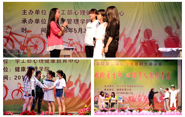 5月23日晚,以“阳光护航助力成长,心理育人善待生命”为主题的我校第二届校园心理情景剧大赛在大学生活动中心举行。本次大赛由学生处与健康管理学院联合举办。各二级学院党总支书记、全体辅导员、学生代表共500余人观看了比赛。