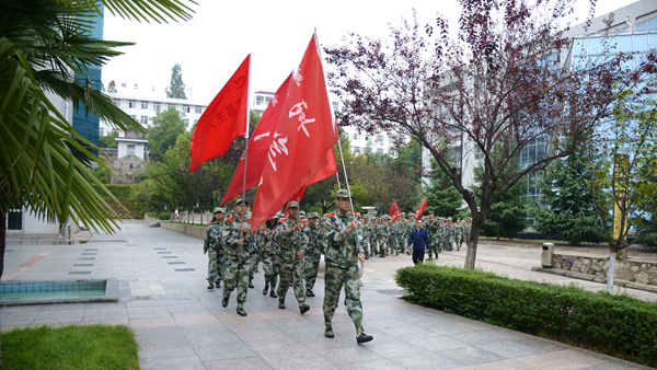 9月14日,我校2018级新生顺利完成了十公里行军拉练军训科目。上午8:20,新生们身着迷彩服,从北新街校区出发,沿江滨大道、商鞅大道、比亚迪大道步行抵达丹江校区并返回,在此期间,党委副书记彭虎军,全体军训教官,学生处、后勤保卫处、各二级学院相关负责人跟随拉练全程,为同学们保驾护航。