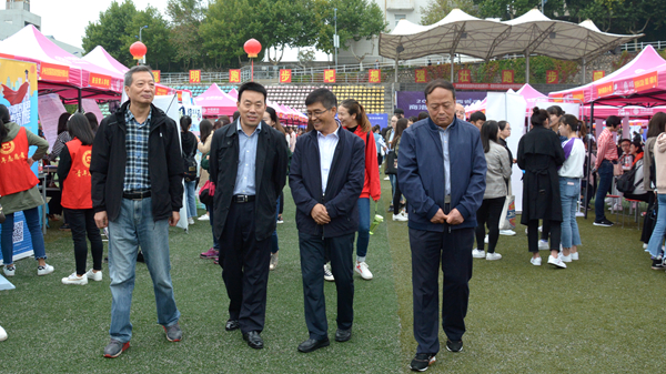 在相关部门负责人的陪同下,彭虎军来到招聘会现场,与参会单位代表、学生进行了亲切交流,了解用人单位需求、招聘情况与学生求职意向。他要求各相关部门要认真、周到做好各项接待工作,为毕业生提供热情、详尽的服务。